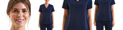 - V-neck style with left chest pocket with combined mobile and pen pocket