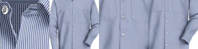 - 3.4-ounce, 56/36/8 cotton/poly/spandex end-on-end (Air Blue and Gusty Grey)